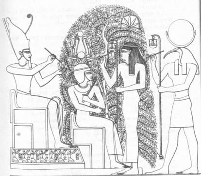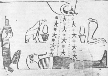 24. Mumia Ozyrysa, z której kiełkują rośliny. Przerys winiety z