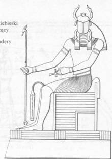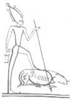 37. Re-Ozyrys w postaci mumii z głową barana. Przerys reliefu z grobowca królowej Nefertari w Dolinie Królowych w Tebach, XIX dynastia.