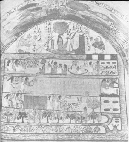 35. Przerys winiety z Księgi Dwóch Dróg z sarkofagu. Kair, Muzeum Egipskie.