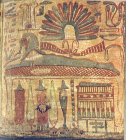 22. Neftyda klęcząca na znaku złota. Malowidło na sarkofagu,
