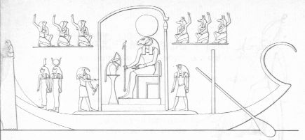 59. Barka słoneczna Re. Przerys reliefu ze ściany tylnej świątyni w Wadi es-Sebua, XIX dynastia.