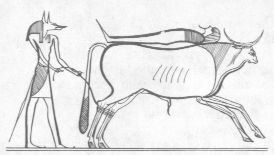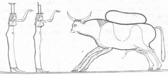 64. Byk Bata. Przerys winiety z Papirusu Jumilhac. koniec I w. p.n.e. Paryż, Luwr.