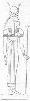 70. Izyda — matka Horusa i małżonka Ozyrysa, Wielka Pani Niebios. Przerys reliefu ze świątyni skalnej z Bet el-Wali (obecnie koło Wielkiej Tamy Asuańskiej), XIX dynastia.
